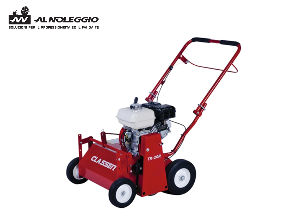 La sua larghezza di lavoro è di 50 cm e permette l’arieggiatura di differenti tipologie di tappeti erbosi. È dotato di motore Honda 5.5 hp, ruote semi-pneumatiche e maniglie ripiegabili che ne facilitano il trasporto.