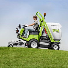 È dotato di raccolta erba con scarico idraulico ad altezza elevata, consentendo un riempimento efficiente del cassone senza interrompere il lavoro, oltre a offrire un posto guida confortevole con idroguida per un uso prolungato senza affaticamento.