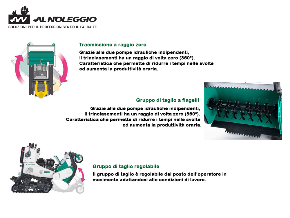 I cingoli garantiscono stabilità e trazione su ogni tipo di terreno, anche in pendenza o su superfici sconnesse, mentre la pedana operatore offre maggiore controllo e visibilità durante il lavoro. Compatta, robusta e altamente produttiva, è la soluzione ideale per professionisti del verde, manutenzioni agricole e lavori su aree difficili.