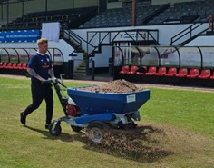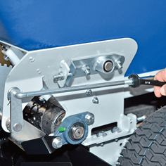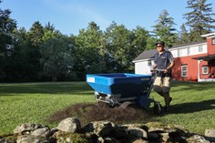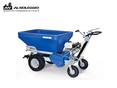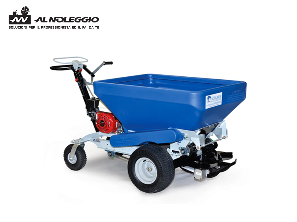 Lo spandisabbia semovente rotativo è adatto alla distribuzione di sabbia, argilla calcinata, gomma granulare, miscele di terreno, materiali polverizzati, compost e terriccio setacciato. È dotato di doppia elica, nastro trasportatore, ampia tramoggia da 330 litri e motore da 5,5 hp.