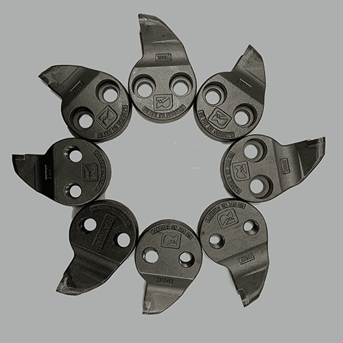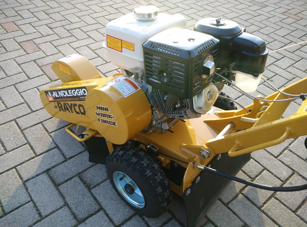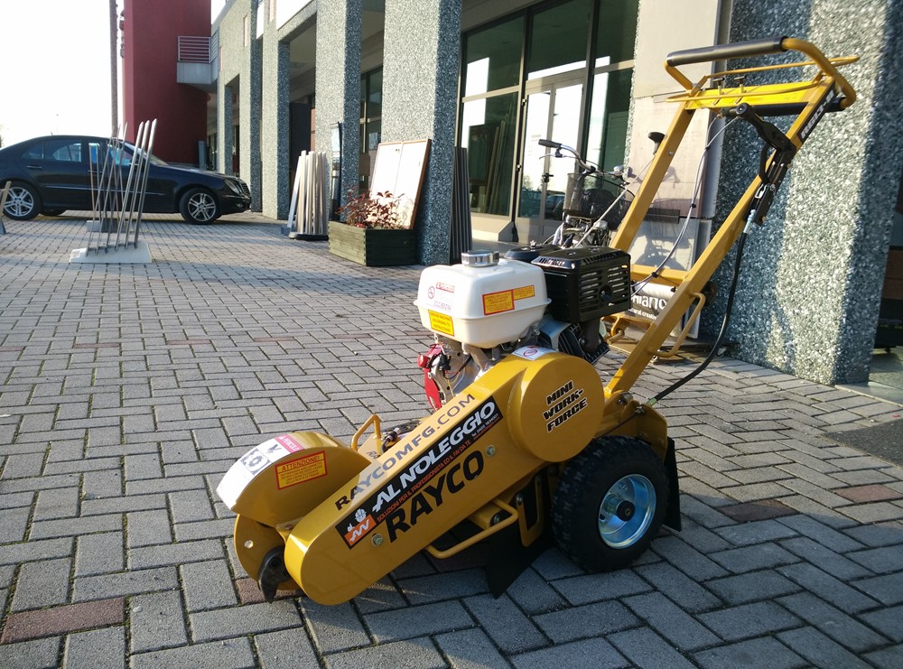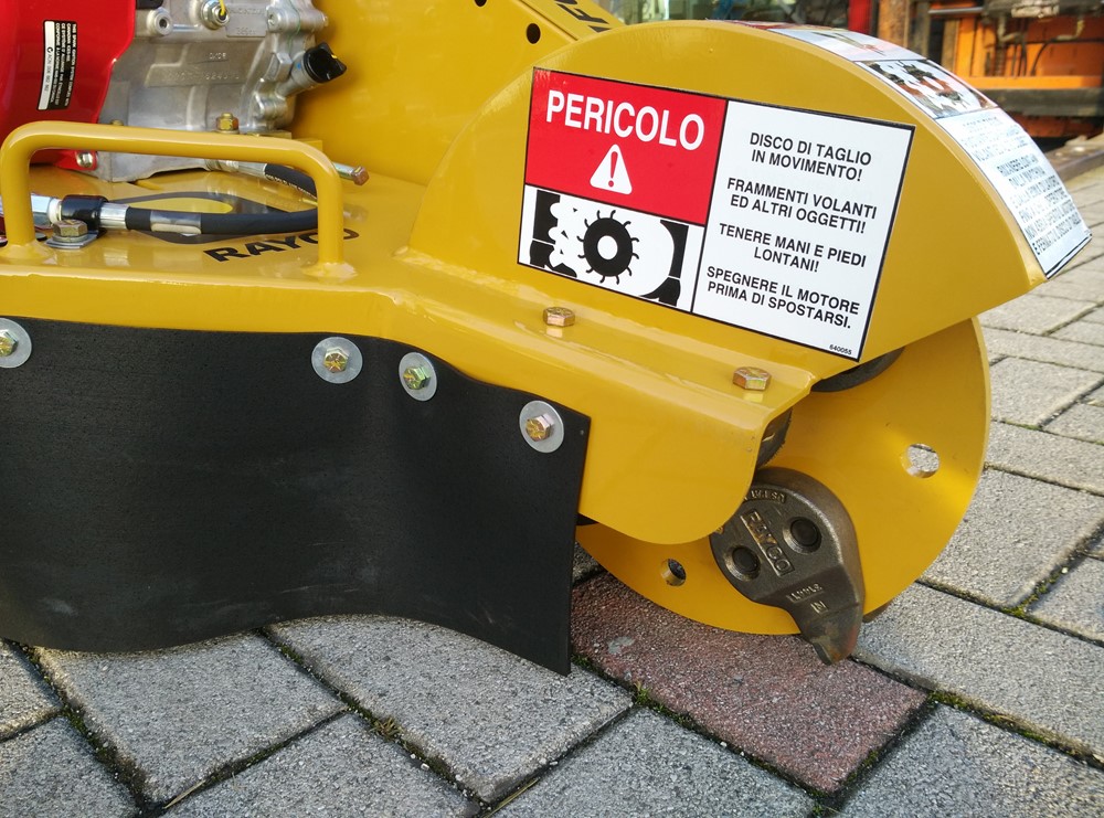Il disco di taglio, formato da 8 denti Rayco Super Tooth, permette di fresare ceppi di piccole dimensioni fino a massimo 3 ceppi dal diametro di 20-30 cm.