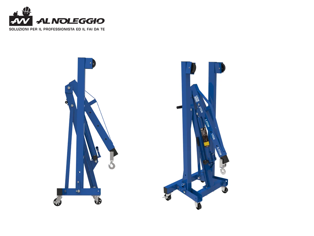 Il braccio regolabile permette di adattare la capacità di sollevamento alle diverse esigenze, mentre le ruote integrate garantiscono facilità di spostamento anche con carichi importanti. Il design pieghevole consente di ridurre gli ingombri e ottimizzare lo spazio quando la macchina non è in uso.