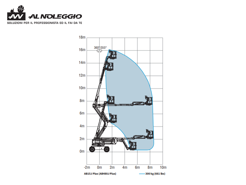 a piattaforma aerea articolata AB15J PLUS è progettata per offrire massima versatilità, sicurezza e performance, sia in spazi ristretti sia su superfici difficili. Grazie alla combinazione di tecnologia avanzata e robustezza costruttiva, questa macchina è perfetta per applicazioni in edilizia, installazioni, facciate e manutenzioni, assicurando affidabilità e facilità d’uso in ogni situazione.